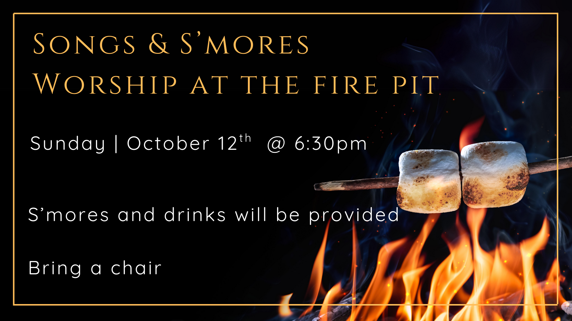 Join us for a night of worship and fellowship as we dedicate our new fire pit area. The church will provide all the fixins for s’mores and hot dogs to roast on the fire.